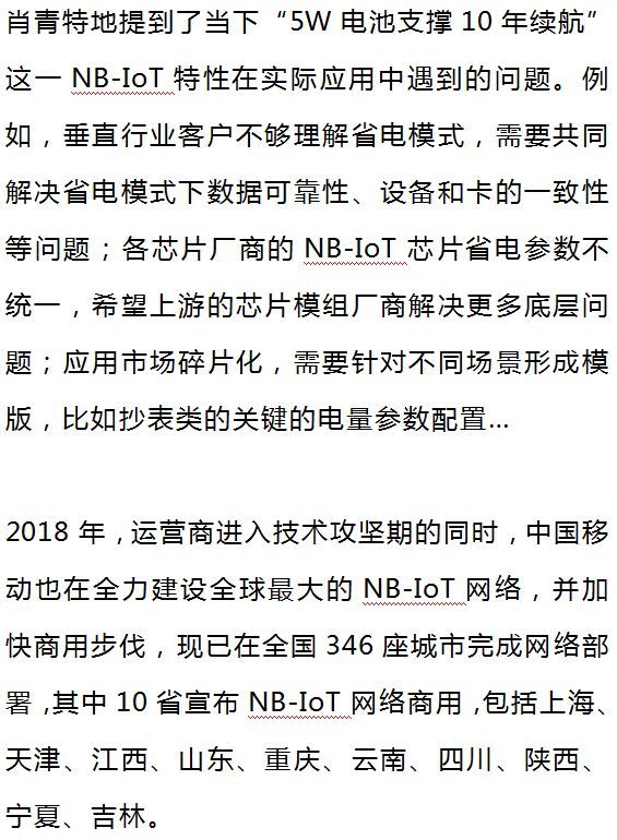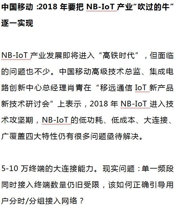 低功耗、低成本、廣覆蓋、大連接這四大NB-IoT特性在實際應用中尚未完全實現,NB-IoT在前期發展中有宣傳過度之嫌。到了2018年,在運營商、芯片模組廠商、終端廠商等產業鏈的努力下,NB-IoT吹過的牛將逐一實現......