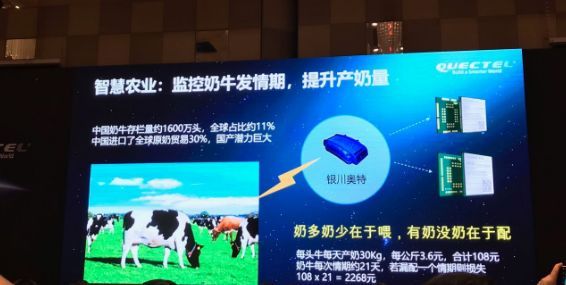 其中,比較典型的應用就是所謂的 “牛聯網”: 即利用傳感器和NB-IoT實現智能奶牛養殖。例如移遠與華為、銀川奧特合作,在每頭奶牛脖子上掛一個傳感器,時時測量牛的體溫和脈搏,及時掌控奶牛的健康和產奶量。通過監測牛的體溫和脈搏,掌控牛的發情期,及時配種,減少損失。除了“牛聯網”,現在“豬聯網”、“羊聯網”也開始試用,農業或將成為下一個海量應用NB-IoT的傳統行業。