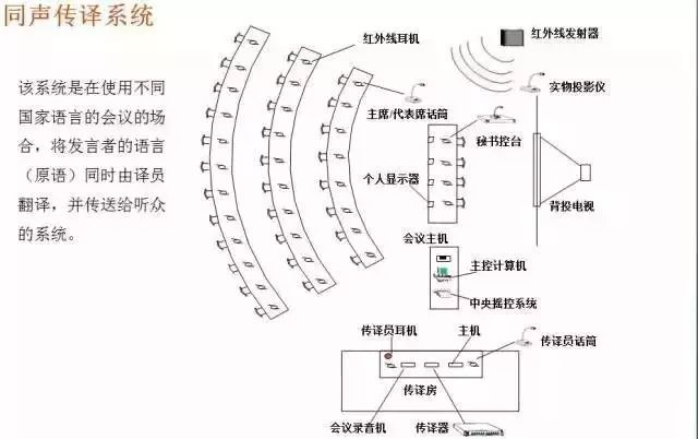 該系統是在使用不同國家語言的會議的場合,將發言者的語言(原語)同時由譯員翻譯,并傳送給聽眾的系統。
