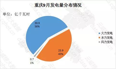 9月,重慶當期發電量為55.5億千瓦時,其中以火力發電為主,當月發電量達到30.9億千瓦時,占比56%。