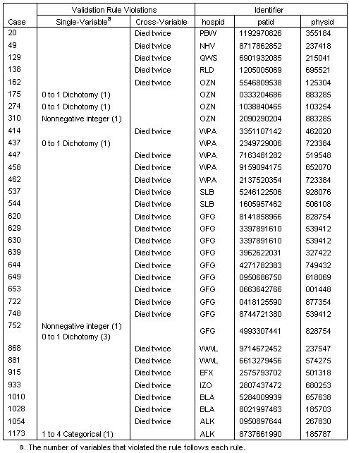 該個例報告顯示了違反多變量規則的個例,以及違反單變量規則的個例。這些個例都需要進行報告,作為數據輸入以進行糾正。