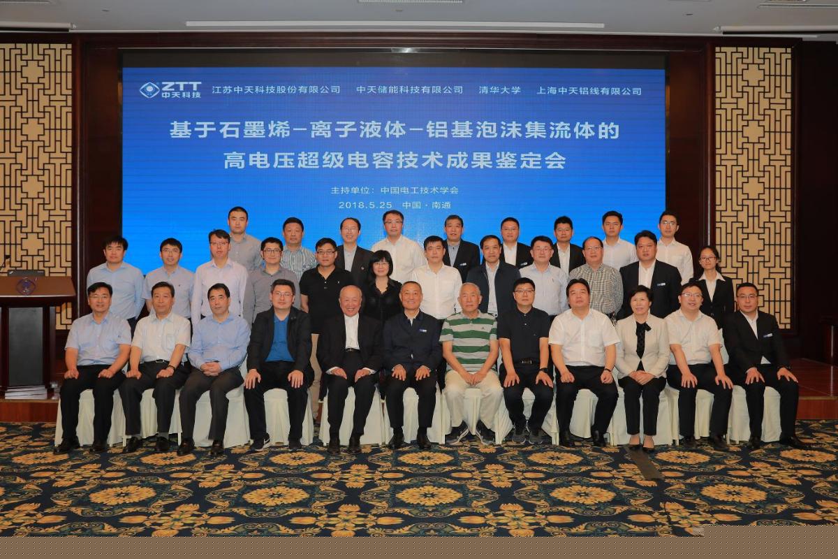 5月25日,由中國電工技術學會組織的“基于石墨烯-離子液體-鋁基泡沫集流體的高電壓超級電容技術”成果鑒定會在江蘇南通召開。該技術由中天科技和清華大學化學工程系聯合開發,經過質詢和討論,以楊裕生院士為首的鑒定專家組認為“該技術達到國際領先水平”。