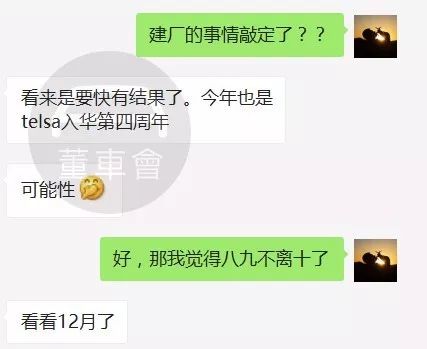 為更好地服務(wù)中國市場,特斯拉正與上海市政府探討在該地區(qū)建設(shè)工廠的可能性。正如之前所溝通,到今年年底,我們的國產(chǎn)化計劃將會更加清晰。特斯拉一直致力于深耕中國市場。同時,為了更好地服務(wù)全球各地市場,我們也不斷在全球范圍內(nèi)評估潛在的制造工廠的選址。盡管我們預(yù)計大部分生產(chǎn)仍將在美國完成,但我們需要設(shè)立海外工廠以確保更多的當(dāng)?shù)叵M(fèi)者能負(fù)擔(dān)得起我們的產(chǎn)品。如后續(xù)的聊天記錄所示,特斯拉內(nèi)部也應(yīng)該是基本確認(rèn)了這個消息,只是等待在合適的機(jī)會予以宣布,而這個時間可能在12月份。