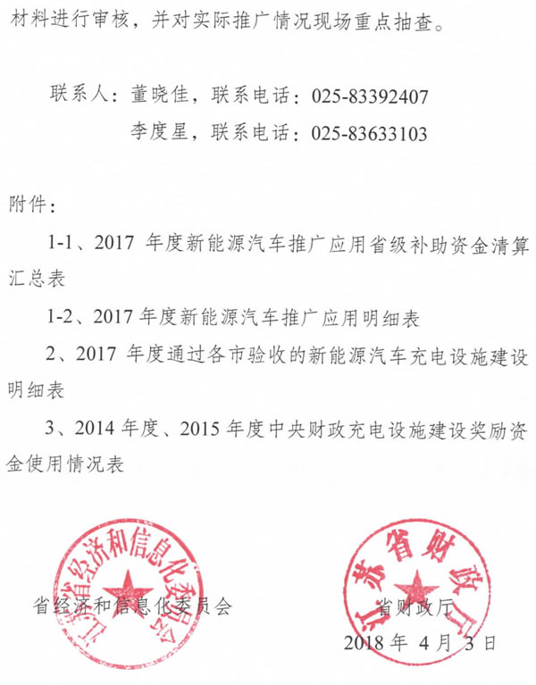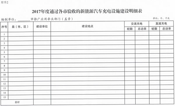 1、各縣(市、區)經信委、功能區經發局負責對本地區申請材料進行全面審核匯總,于4月16日前向市經信委報送《2017年度新能源汽車推廣應用明細表(“省通知”附件1-2)》、《2017年度通過各市驗收的新能源汽車充電設施建設明細表(“省通知”附件2)》,市經信委將委托第三方機構專項審查。