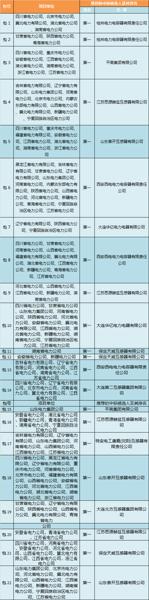 2017年國網第六次變電設備—互感器中標侯選人
